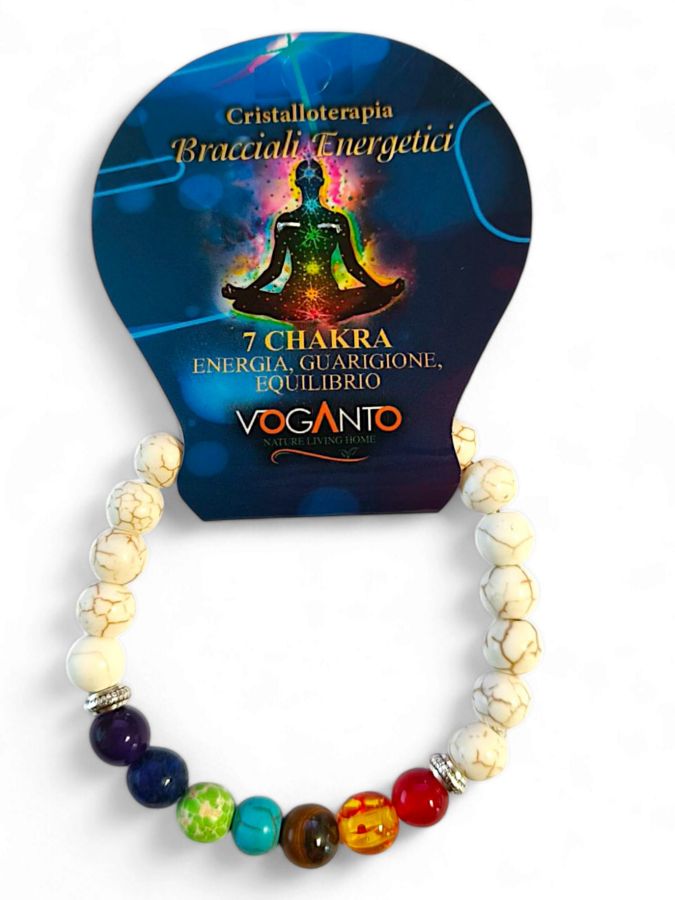 Il bracciale 7 Chakra è composto da pietre naturali che rappresentano i sette centri energetici principali del corpo, ciascuno collegato a specifiche proprietà e benefici. Ogni pietra aiuta a bilanciare e armonizzare un determinato chakra, promuovendo il benessere fisico, emotivo e spirituale. Ecco le pietre associate ai sette chakra e le loro proprietà: