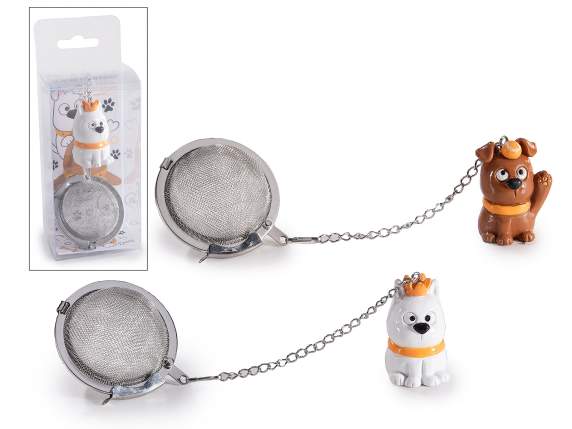 Infusore da tè e tisane in acciaio inox con decorazione a forma di cagnolino in resina.