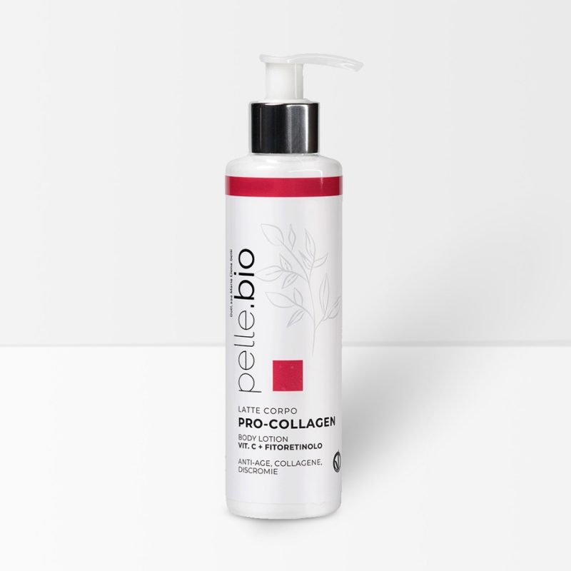 La Pro-Collagen Body Lotion di Pelle Bio è un latte corpo intensivo studiato per le pelli mature, spente o che presentano i segni del crono e foto-aging (macchie e discromie). Grazie all’innovativo complesso Pro-Collagen, stimola la naturale produzione di elastina e collagene senza ricorrere a ingredienti fotosensibilizzanti, rendendola perfetta per l’uso quotidiano in ogni stagione.